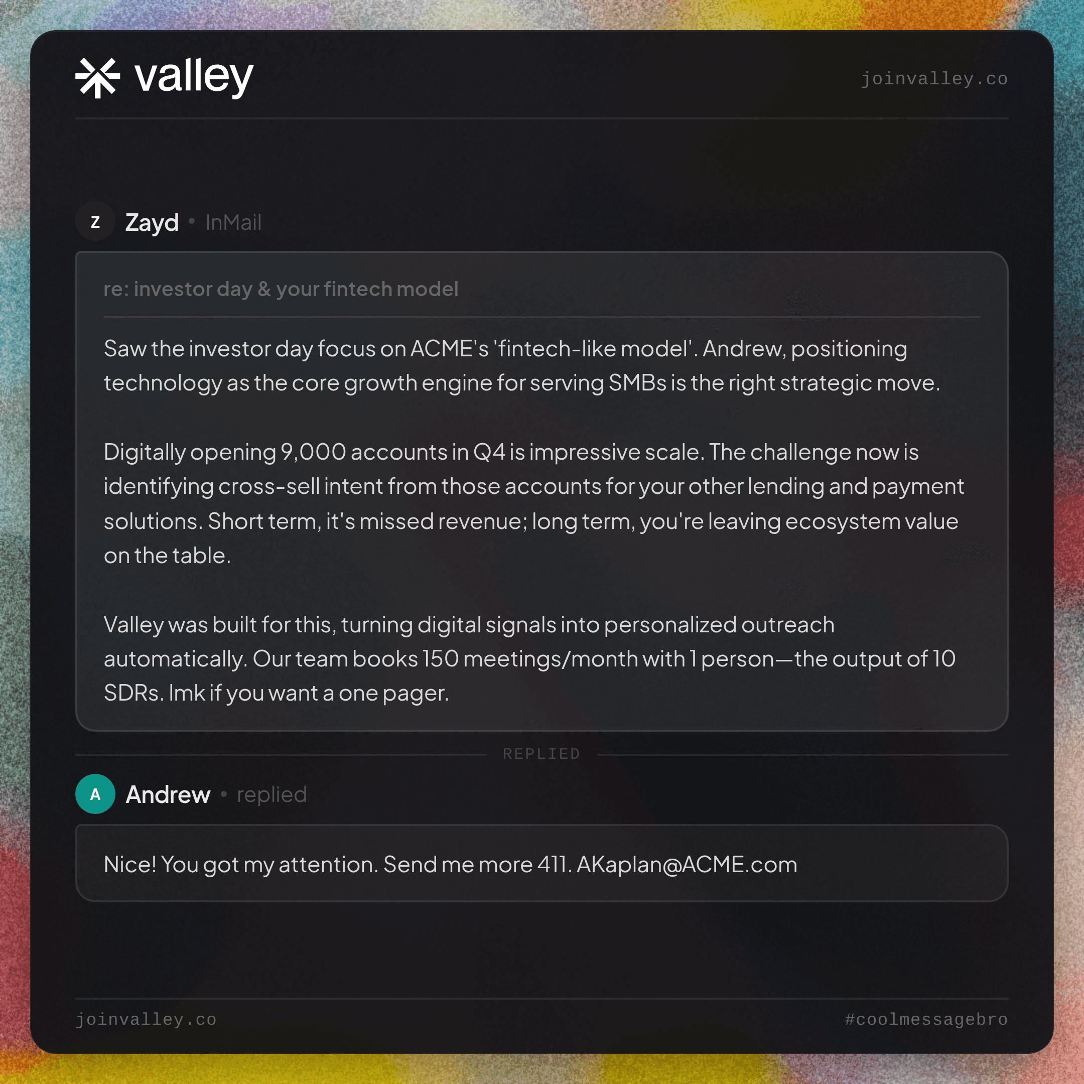 Not every prospect responds positively to LinkedIn outreach. Some explicitly decline interest, others raise objections, and a few respond negatively. Valley's response frameworks help teams handle rejection professionally while preserving relationships and learning from feedback.